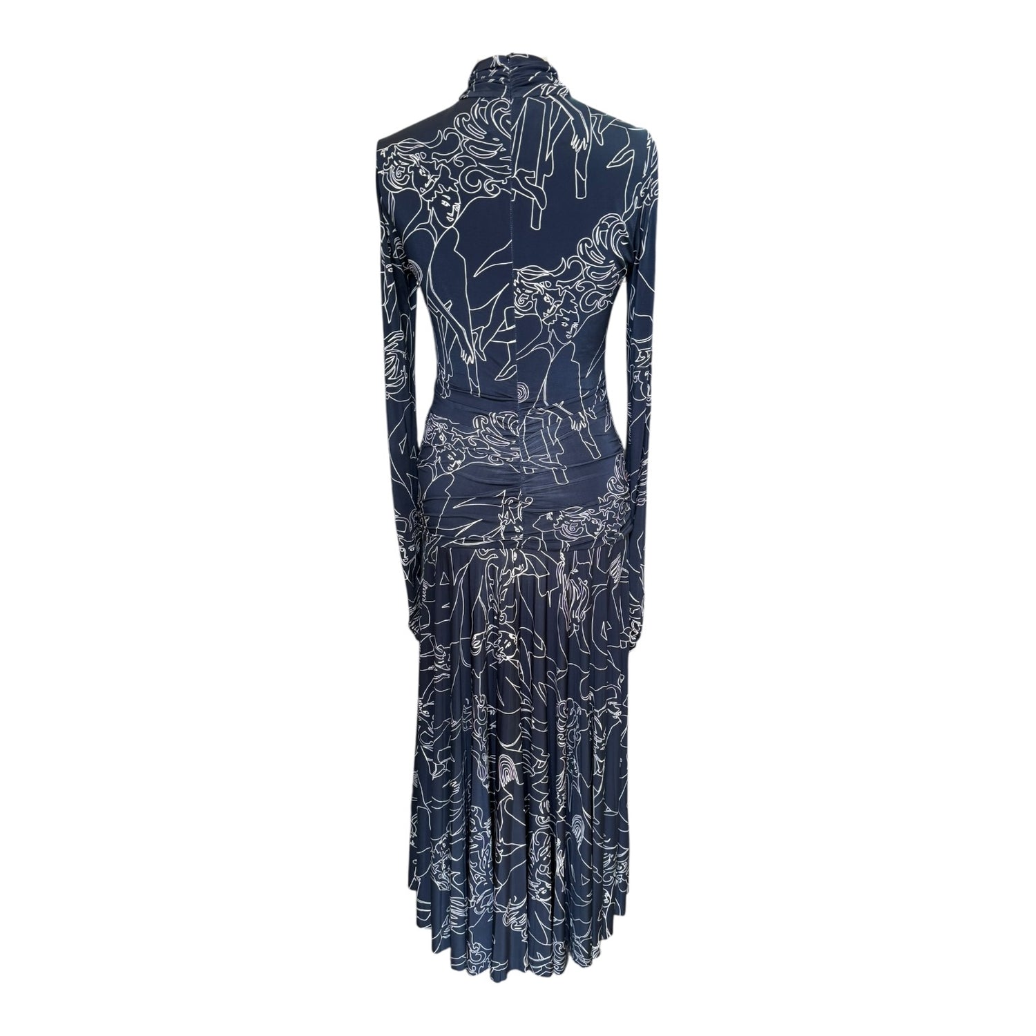 VVB Victoria Beckham Navy Turtleneck Stretch Crepe Drop Waist Dress
