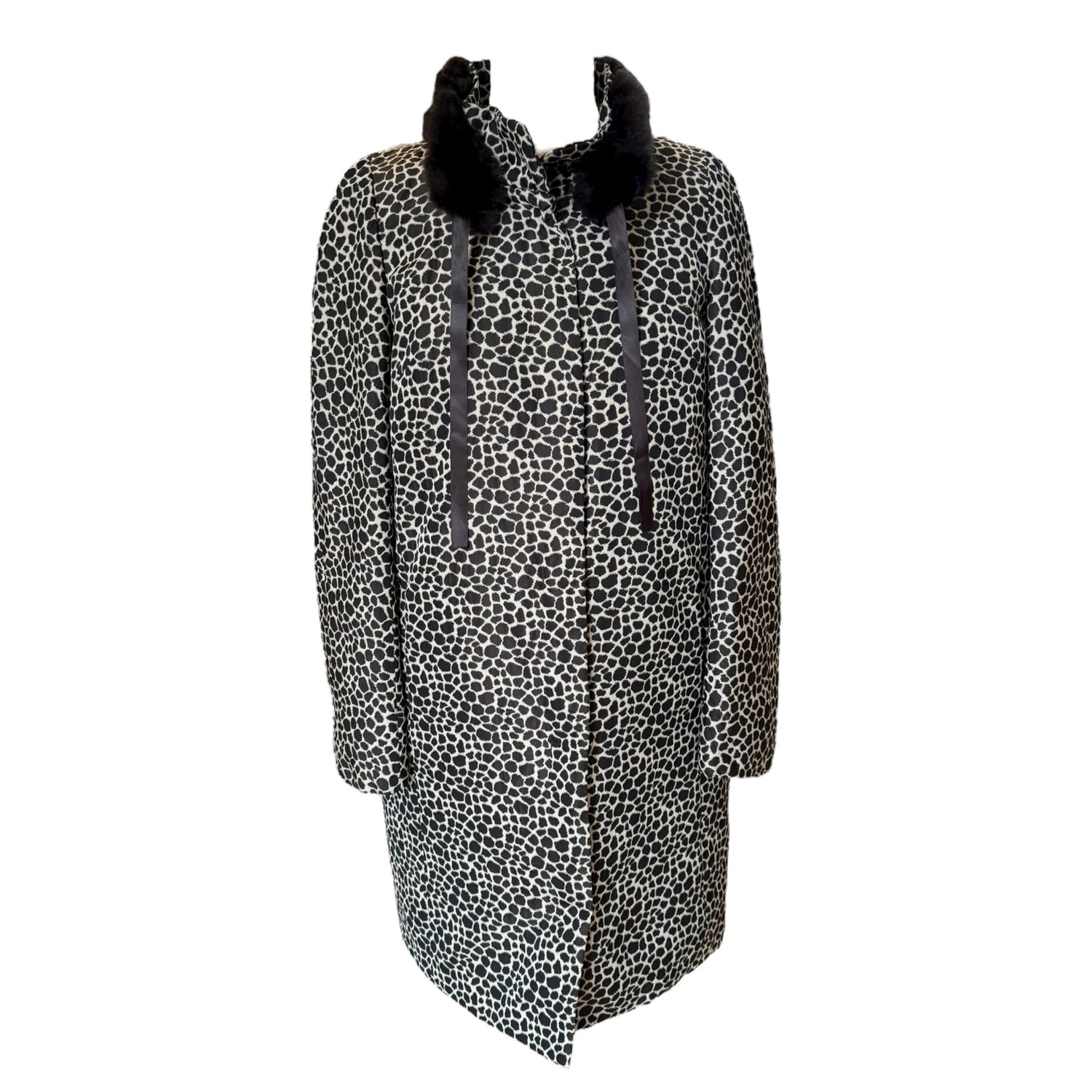 Weekend Max Mara Black and Cream Animal Print Puffer with Detachable Trim