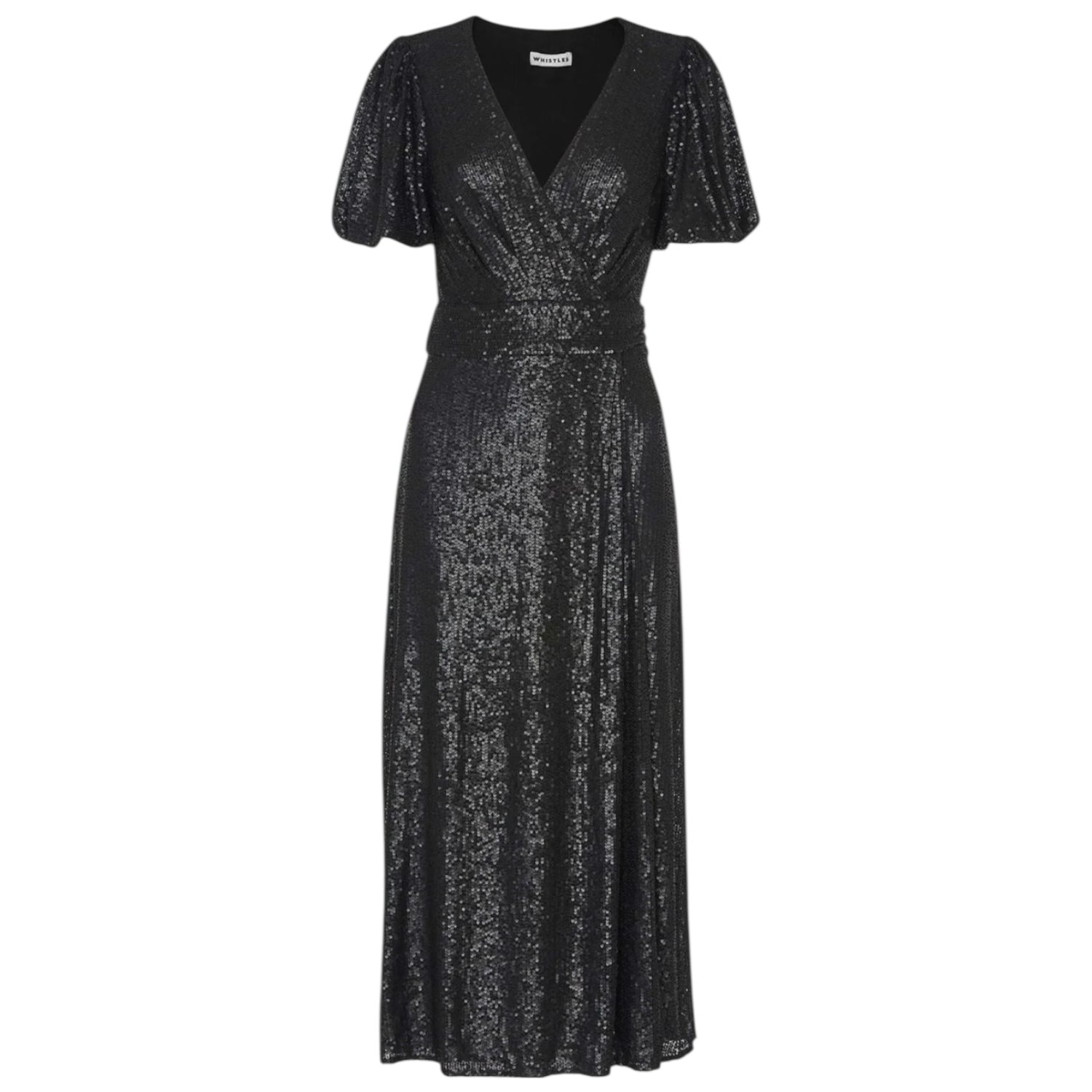 BRAND NEW WITH TAGS Whistles Black Sequin Wrap Dress