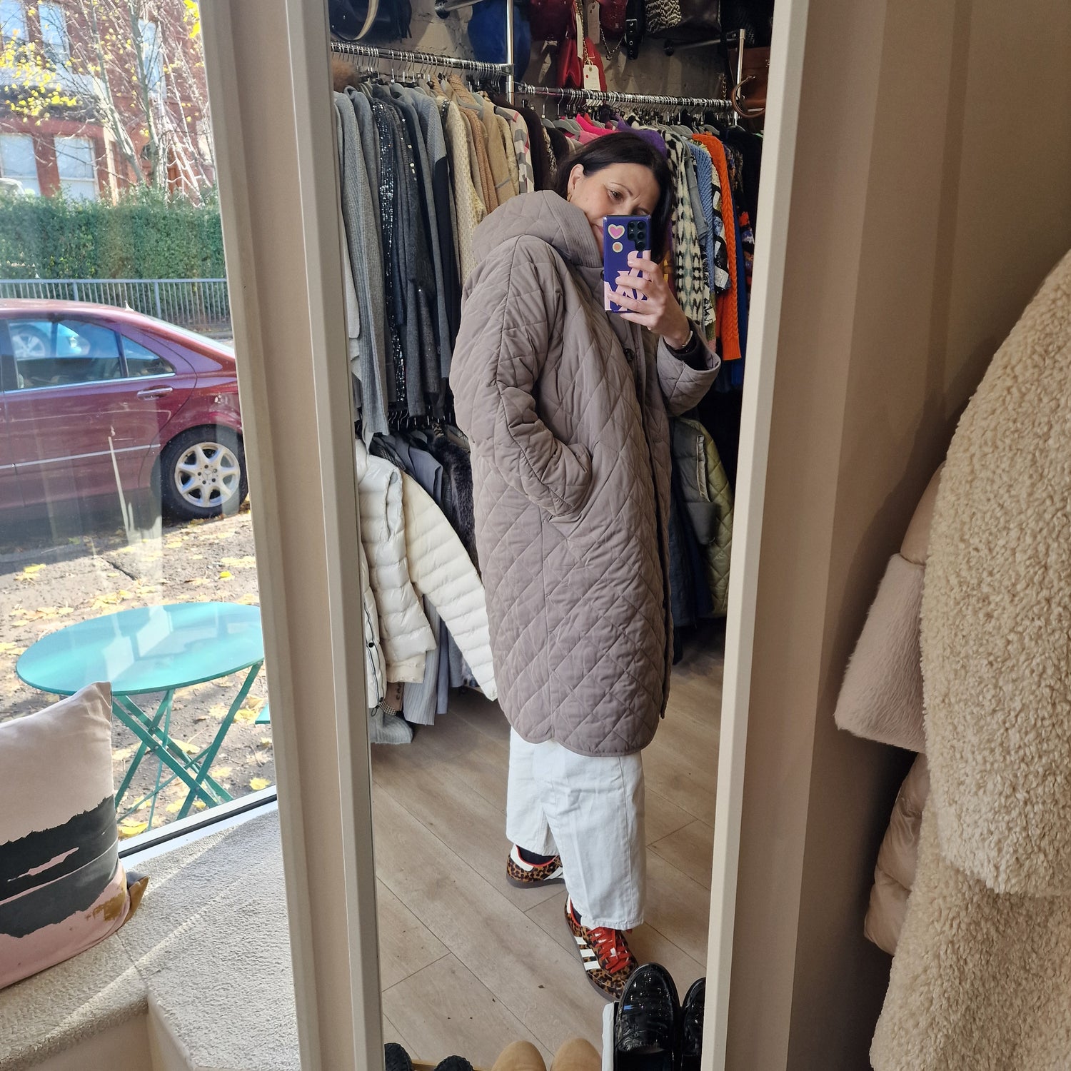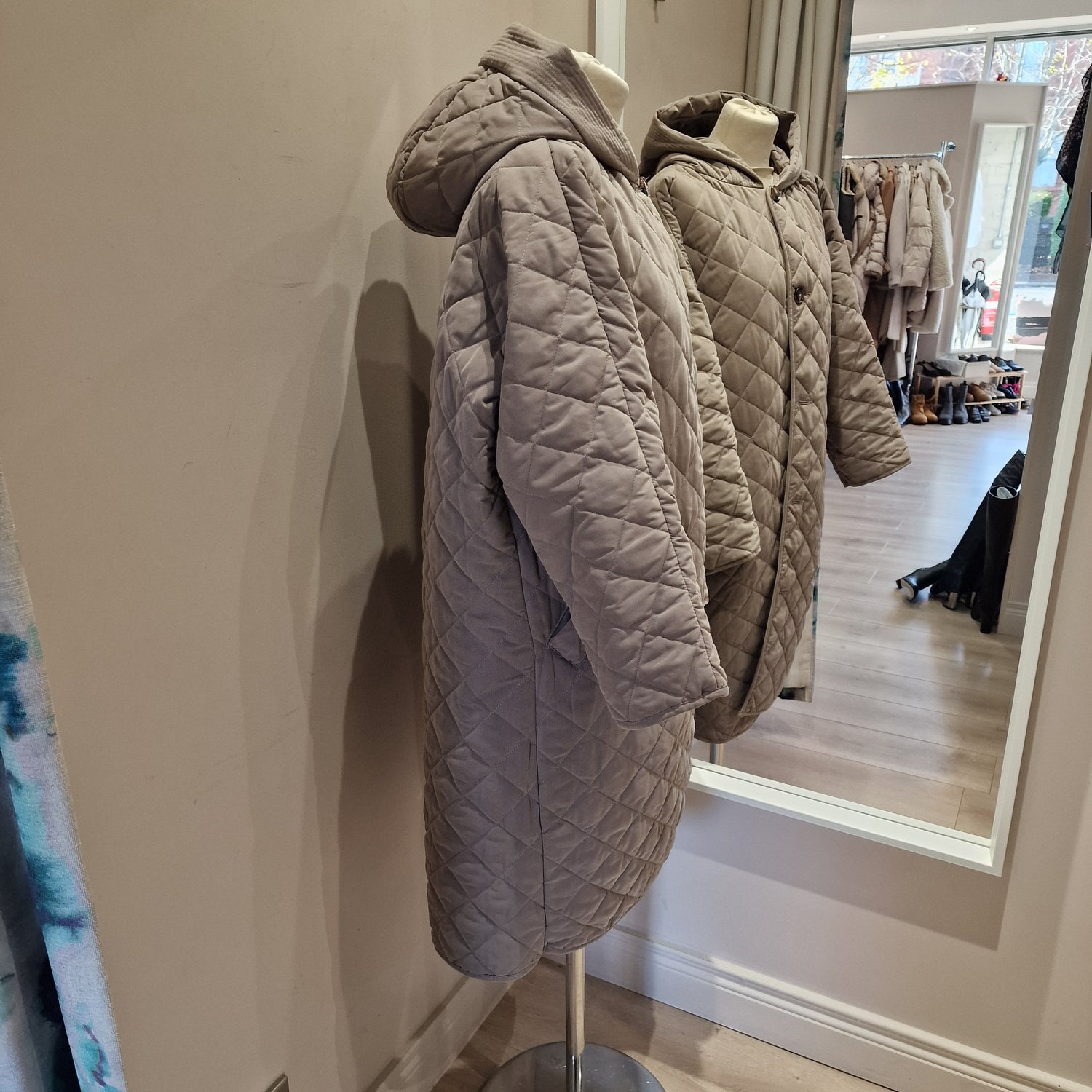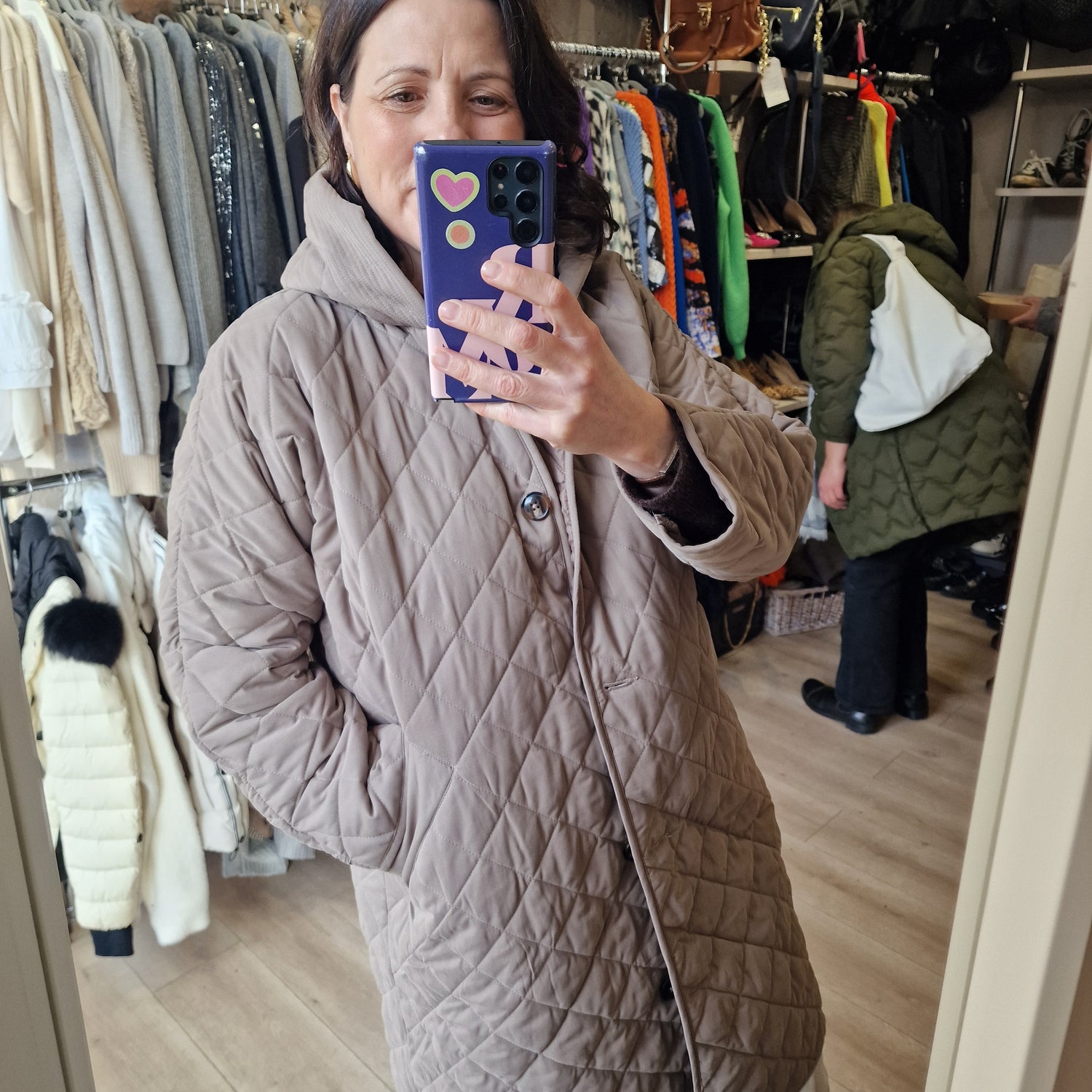 Deep Taupe Quilted Hooded Coat. Excellent condition